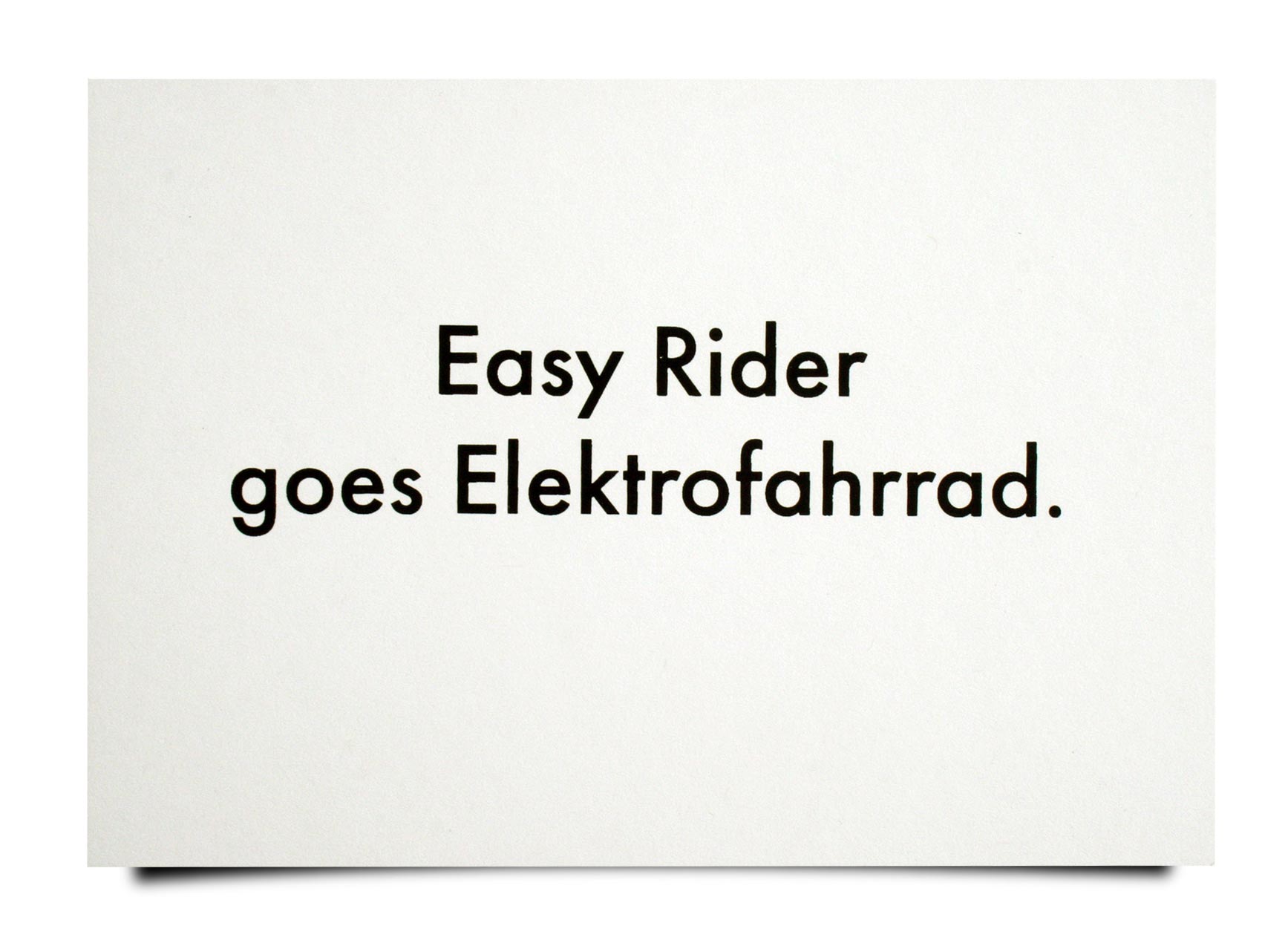 Karte für E-Bike-Fahrer und Fahrradfans mit einem handgedruckten, humorvollem Spruch. Zum Geburtstag, als Glückwunschkarte zum neuen Elektrofahrrad oder einfach so – für diese Karte mit Fahrradspruch gibt es unzählige Gelegenheiten.